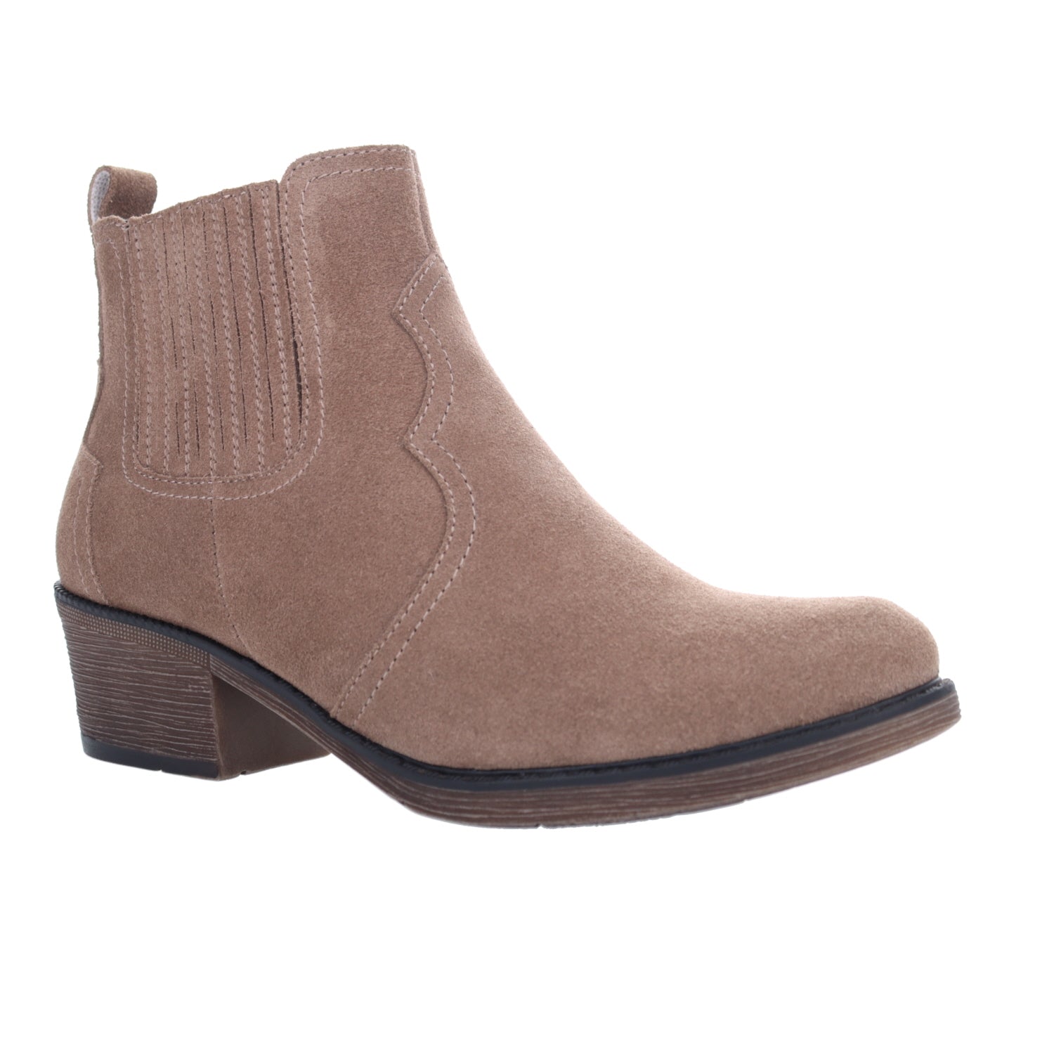 - Suede upper with traditional western styling and hidden side goring for a comfortable fit