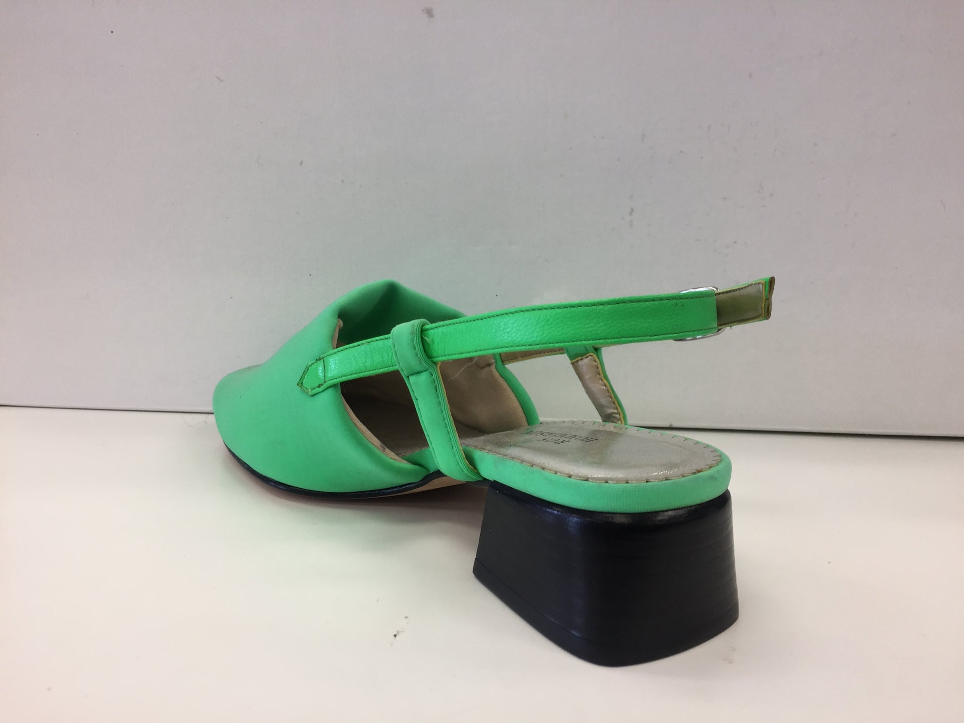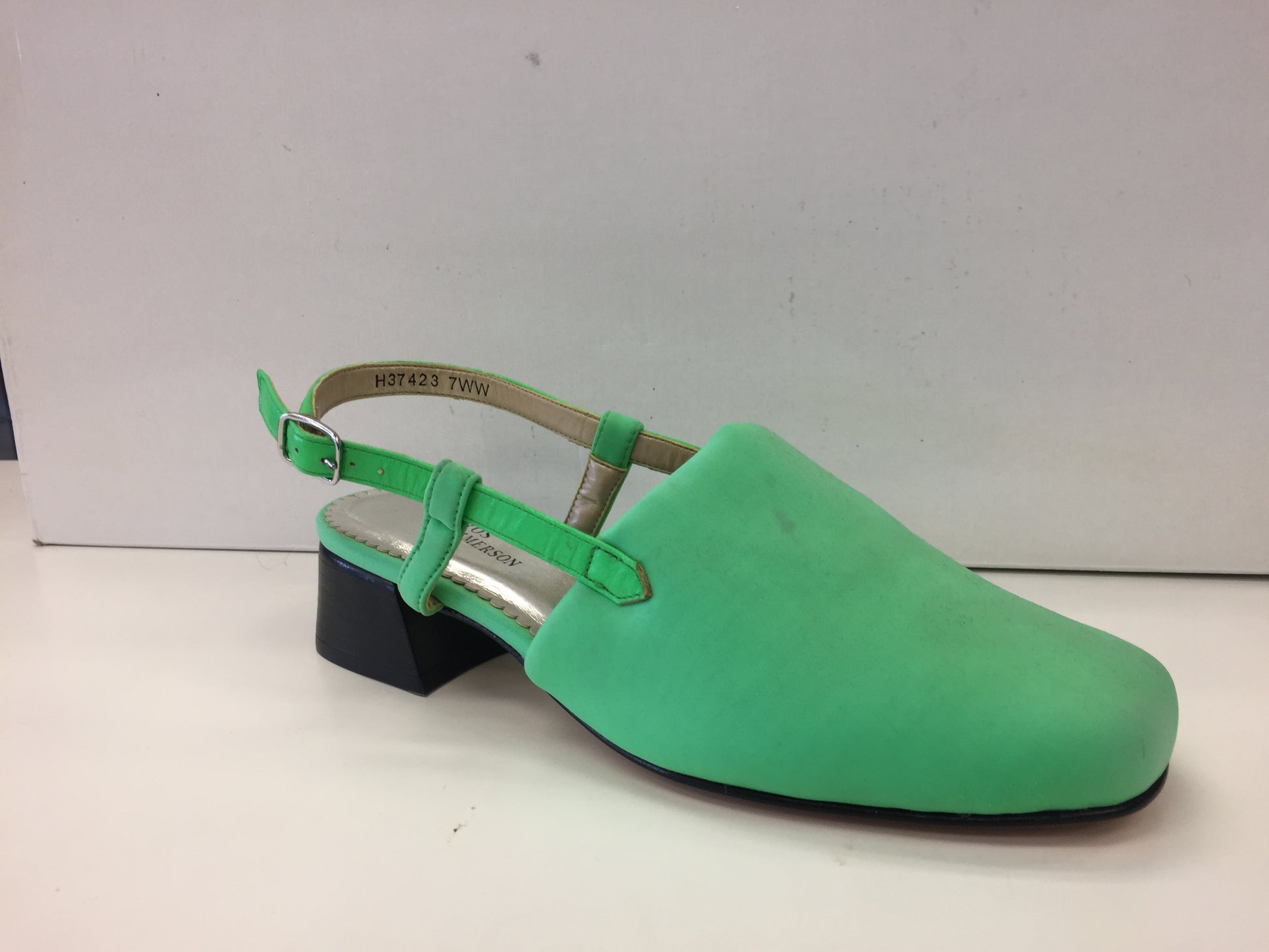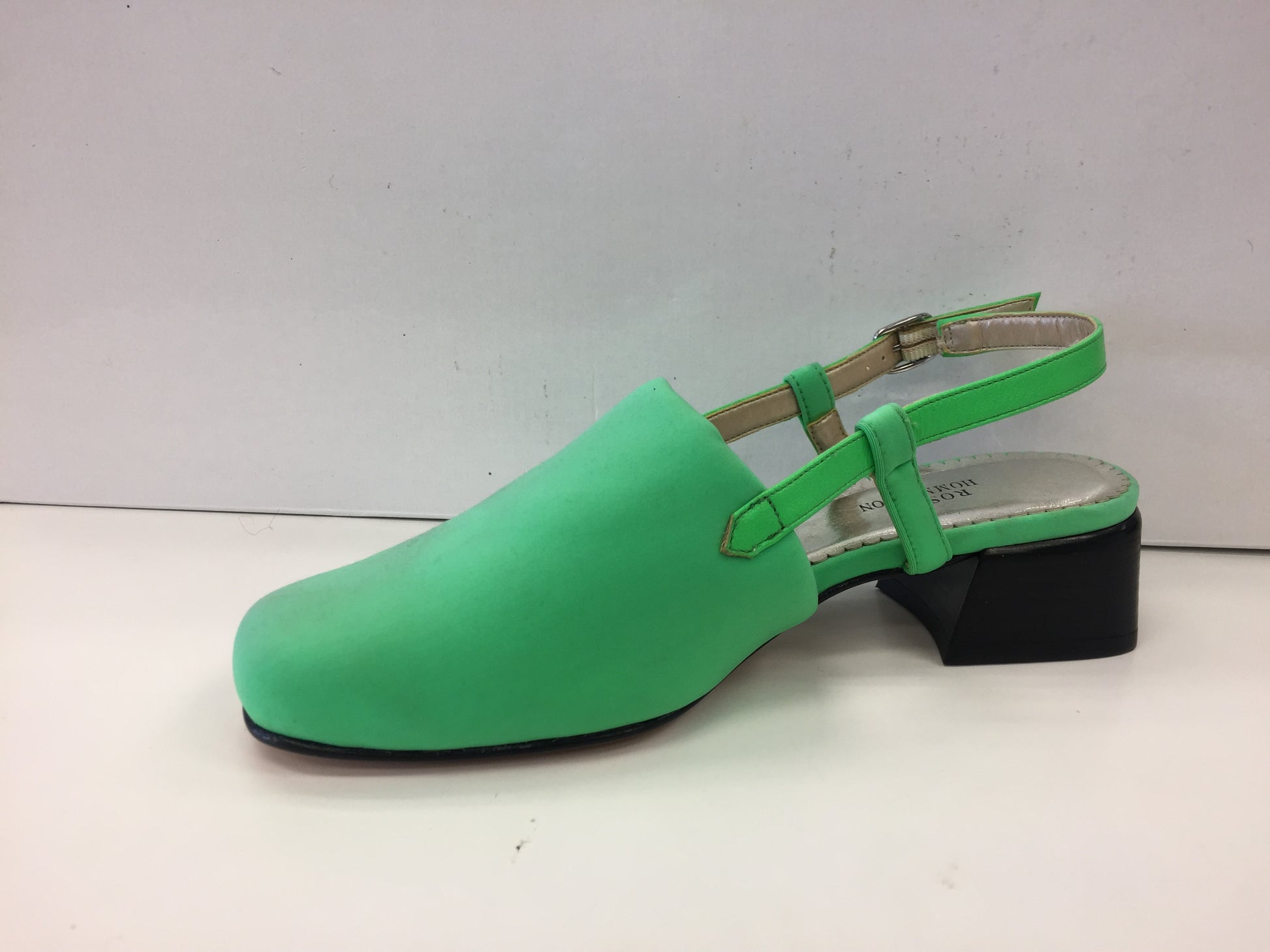 - 1 1/2 leather -stacked heel • Elastic-gored, adjustable buckle